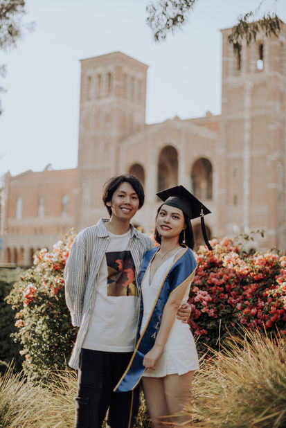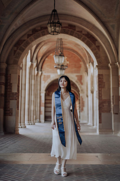 Kiki reached out to me, hoping I could help capture her graduation photos for her master's degree at UCLA. Before the shoot, we had numerous discussions to exchange ideas. Kiki sought my advice on outfit choices, and I recommended some clothing brands that suited her needs. After our discussion, we decided on two white outfits to wear under the graduation gown.